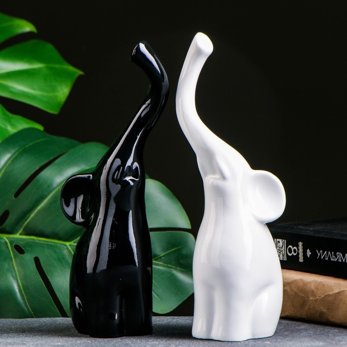 Фигура "Пара слонов" 9х15х25см чёрный/белый,