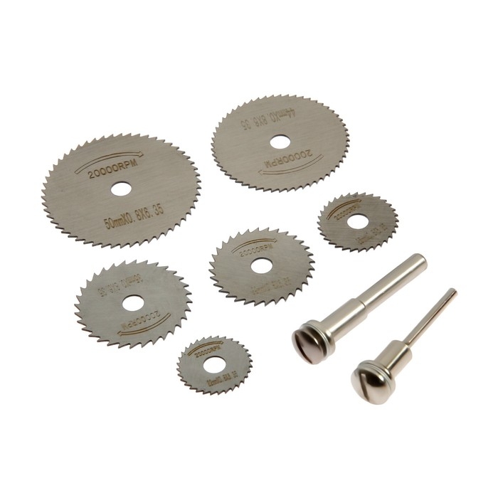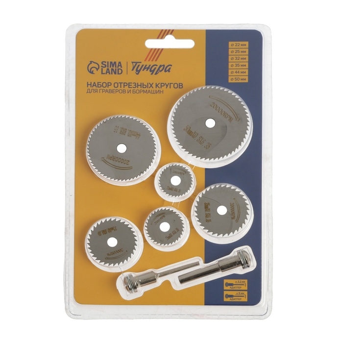 Набор кругов отрезных для граверов и бормашин ТУНДРА, 6 насадок и адаптеры 3.2/6 мм