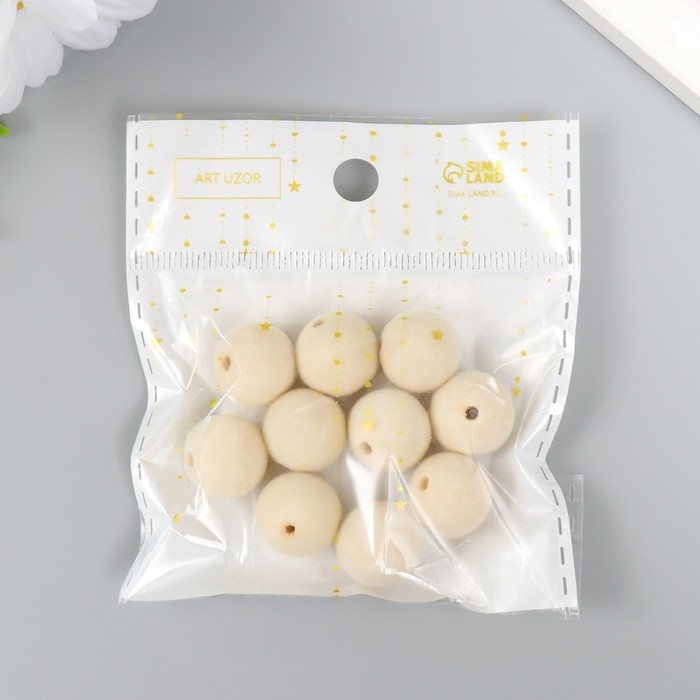 Бусины для творчества бархатное напыление "Белое облако" набор 10 шт d=1,4 см