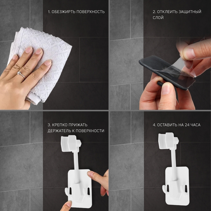 Держатель для душевой лейки ZEIN Z89, самоклеющейся, регулируемый, пластик, белый
