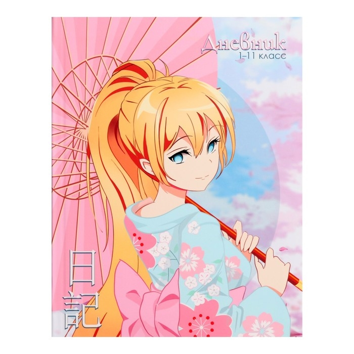 Дневник универсальный для 1-11 классов, "Аниме. Девочка (розовые тона)", интегральная (гибкая) обложка, матовая ламинация, выборочный лак, 40 листов