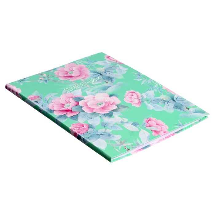 Дневник универсальный для 1-11 классов, "Цветы на мятном фоне", интегральная (гибкая) обложка, матовая ламинация, выборочный лак, 40 листов
