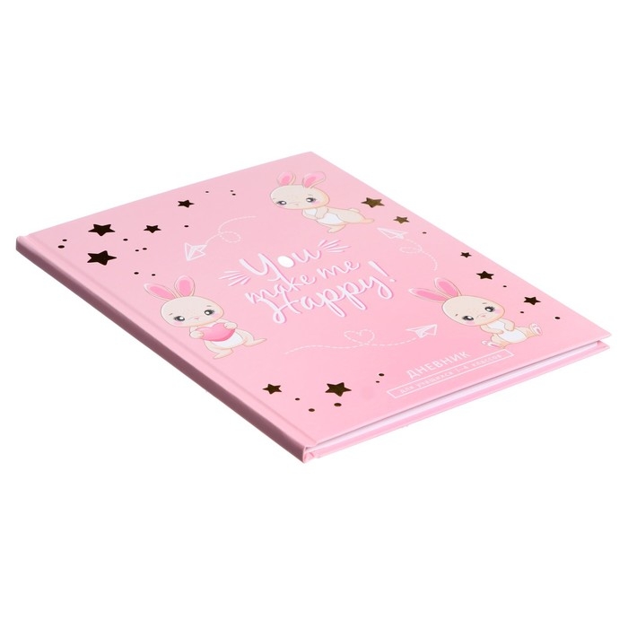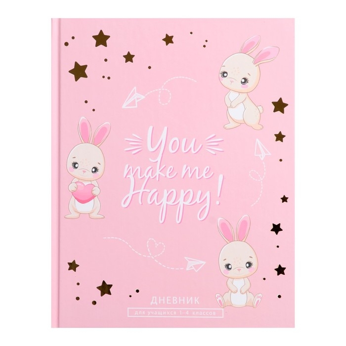 Дневник для 1-4 классов, "Зайки. Паттерн", твердая обложка 7БЦ, матовая ламинация, тиснение фольгой, 48 листов