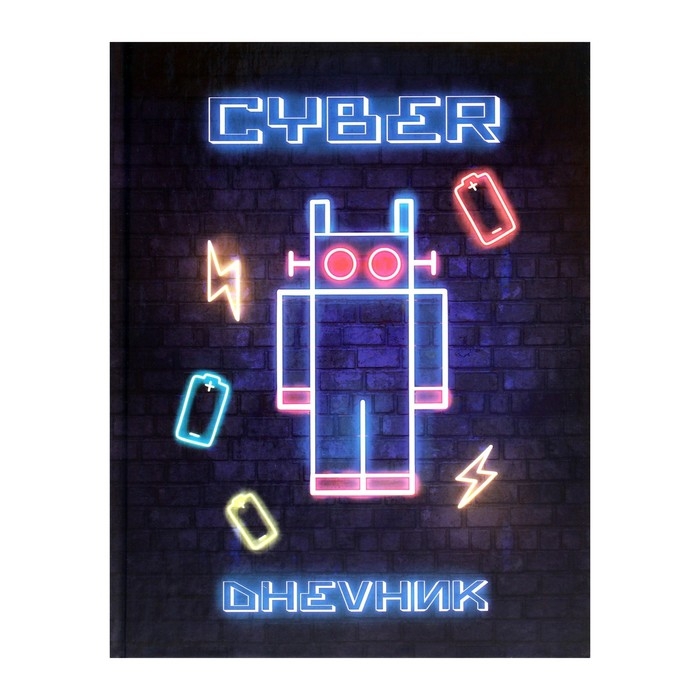 Дневник для 1-4 классов, "Робот. НЕОН вывеска ", твердая обложка 7БЦ, глянцевая ламинация, 48 листов