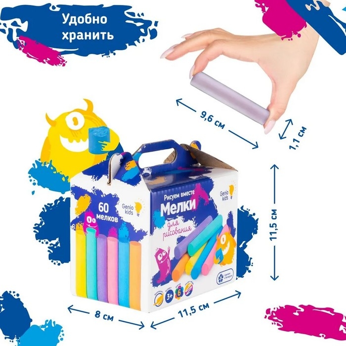 - В комплекте есть коробка для удобного хранения и переноски мелков.