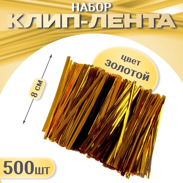 Клип-лента, набор 500 шт., длина 1 шт. — 8 см, цвет золотой