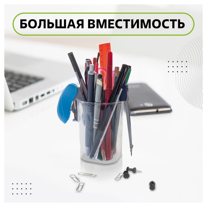 Подставка-стакан для канцелярии Стамм "Фаворит", пластик, 90 х 70 х 70 мм, квадратная, прозрачная