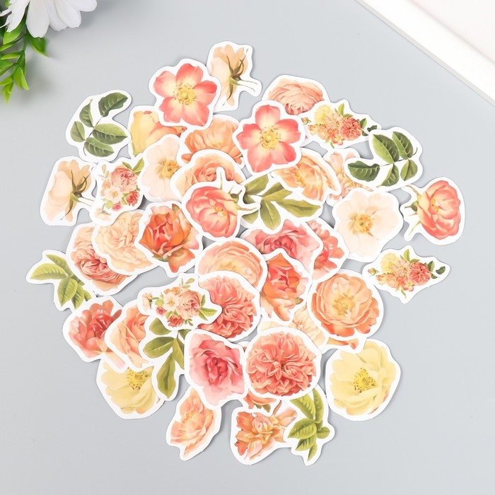 Наклейки для творчества "Пионы" набор 46 шт 4,4х4,4х1,1 см