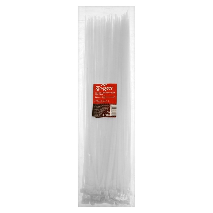 Хомут нейлоновый ТУНДРА krep, для стяжки, 3.6х400 мм, белый, в упаковке 100 шт.