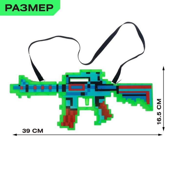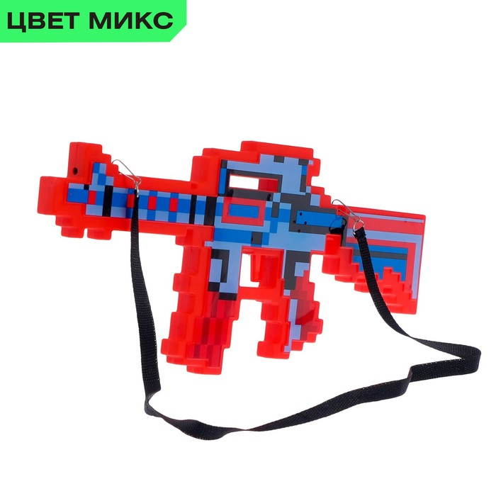 Автомат М16, пиксельный, с лазером, работает от батареек, цв МИКС