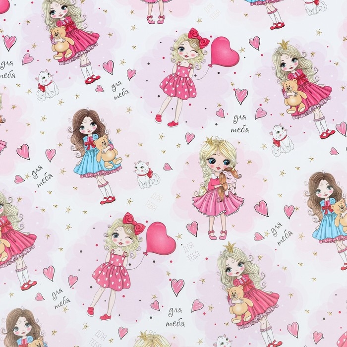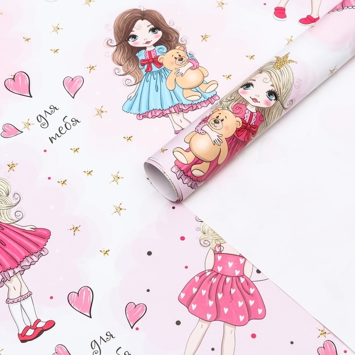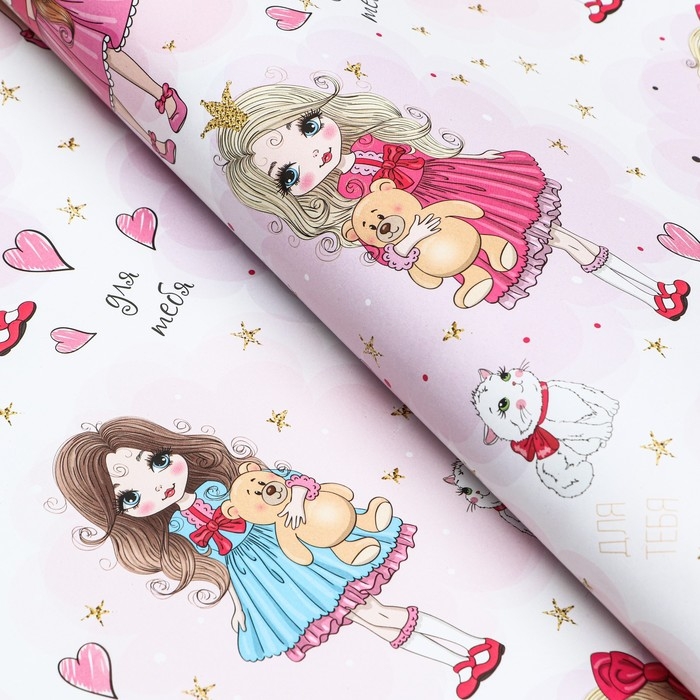 Бумага упаковочная глянцевая "Принцессы", 70 × 100 см,1 лист