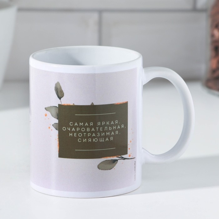 Кружка изготовлена из керамики. Рисунок нанесён методом сублимации, при котором краска проникает в верхний слой изделия, поэтому изображение получается стойким.