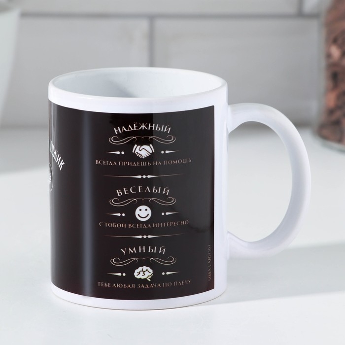 Кружка изготовлена из керамики. Рисунок нанесён методом сублимации, при котором краска проникает в верхний слой изделия, поэтому изображение получается стойким.