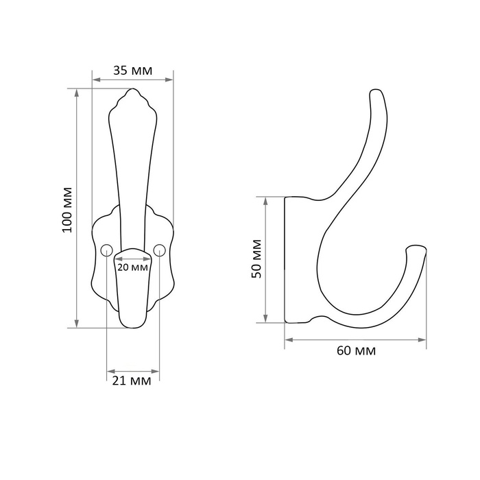 Крючок мебельный CAPPIO PASSION, двухрожковый, черный