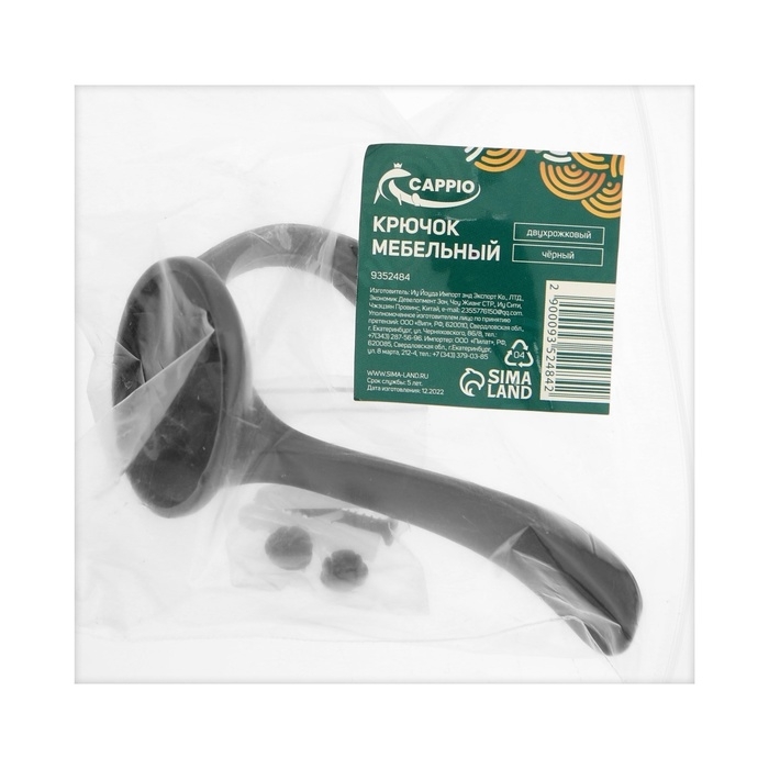 Крючок мебельный CAPPIO ARTURO, двухрожковый, черный