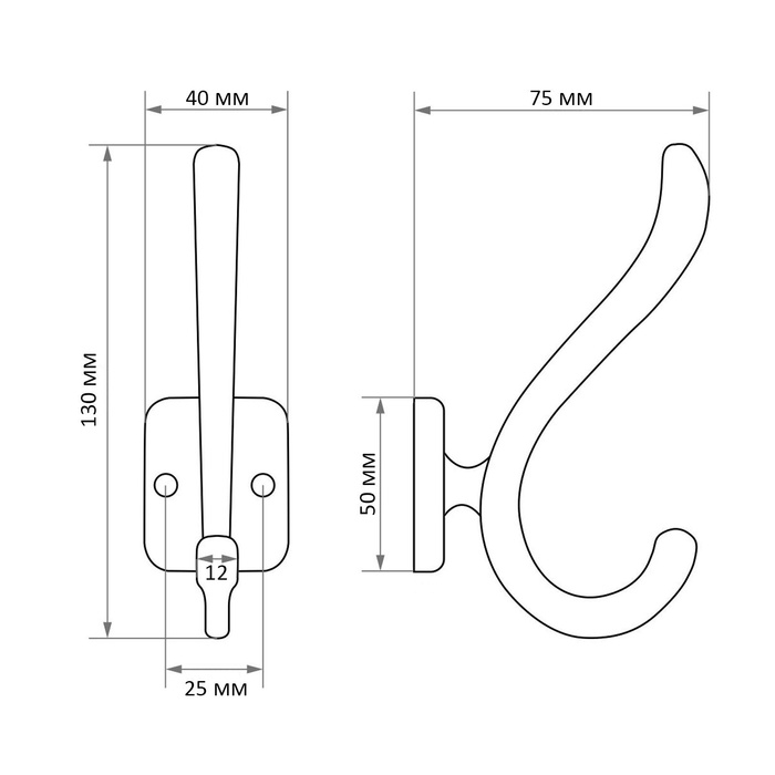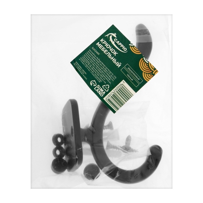 Крючок мебельный CAPPIO SMILE, двухрожковый, черный