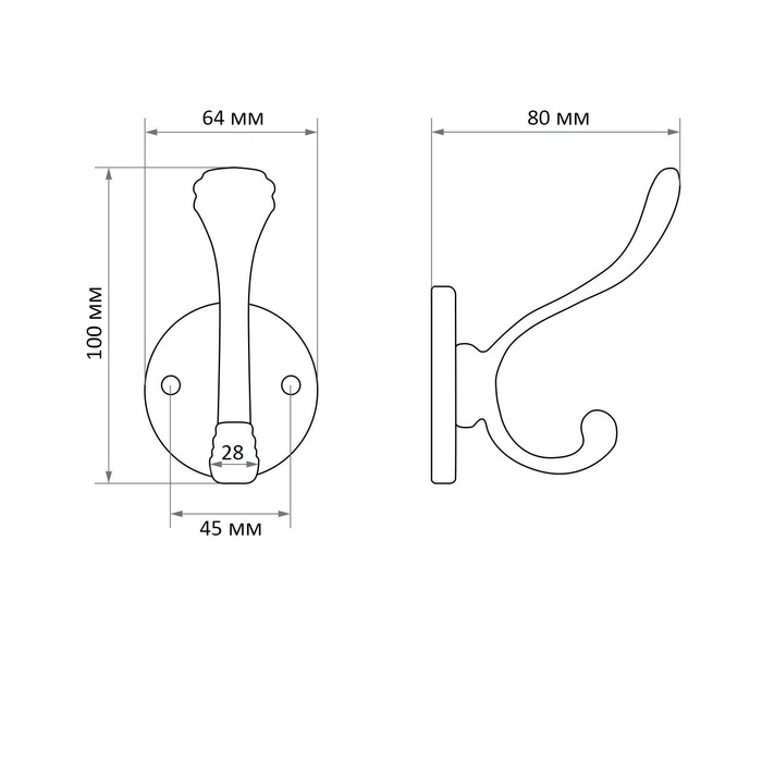 Крючок мебельный CAPPIO GLORIA, двухрожковый, черный