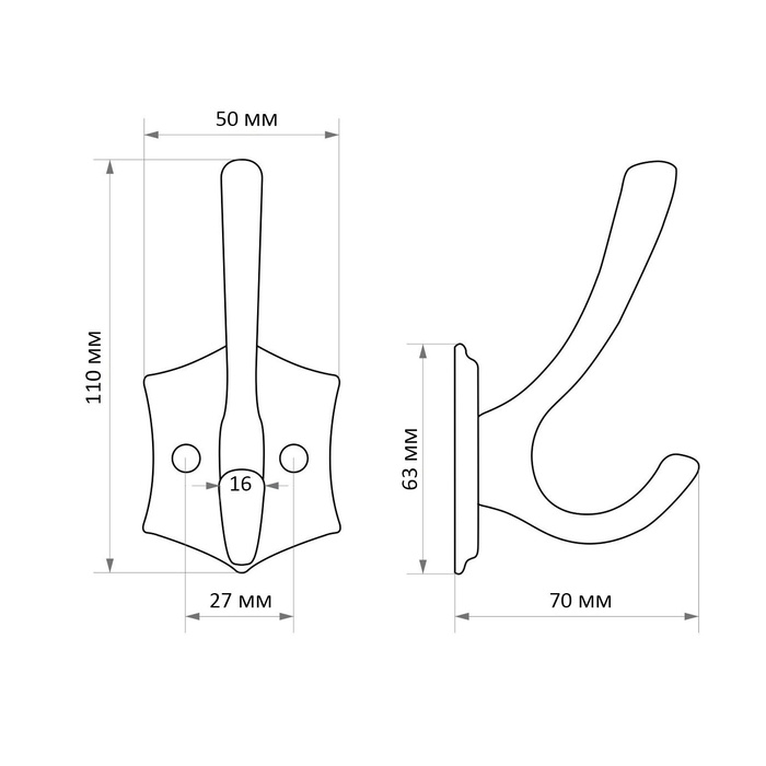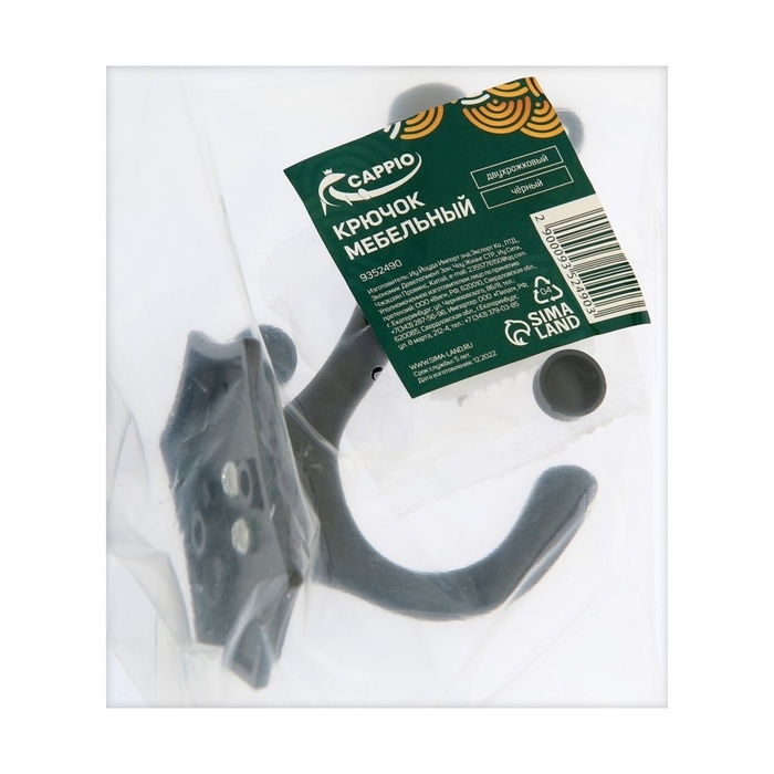 Крючок мебельный CAPPIO DESTINY, двухрожковый, черный