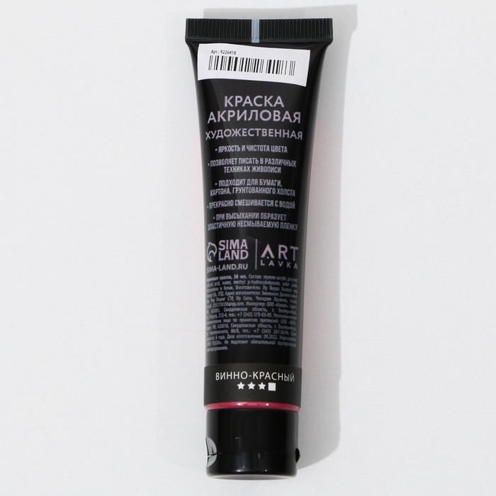 Акриловая краска,цвет цвет metallic винно-красный, в тубе глянцевая 36 мл