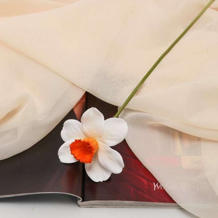 Цветы искусственные "Нарцисс" премиум, 9х35 см, бело-оранжевый