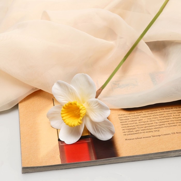Цветы искусственные "Нарцисс" премиум, 9х35 см, бело-жёлтый