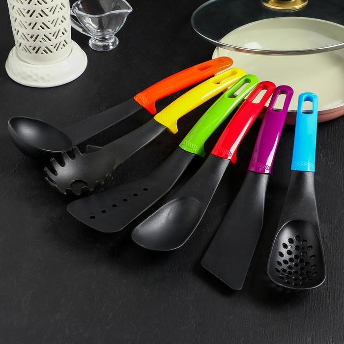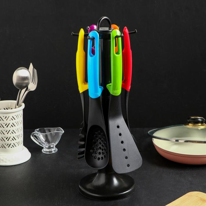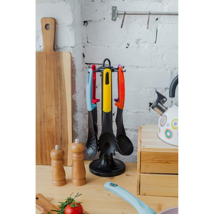 Набор кухонных принадлежностей Доляна «Монпансье», 6 предметов, на подставке, цвет МИКС