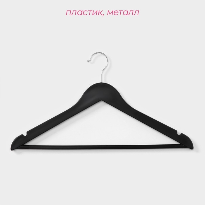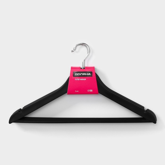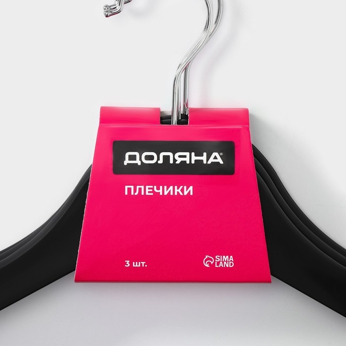 Плечики - вешалки для одежды Доляна, 43×23 см, 3 шт, антискользящая перекладина, цвет чёрный