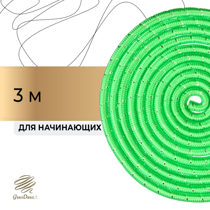 Скакалка для гимнастики утяжелённая с люрексом, 3 м, цвет салатовый