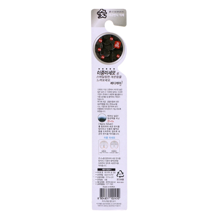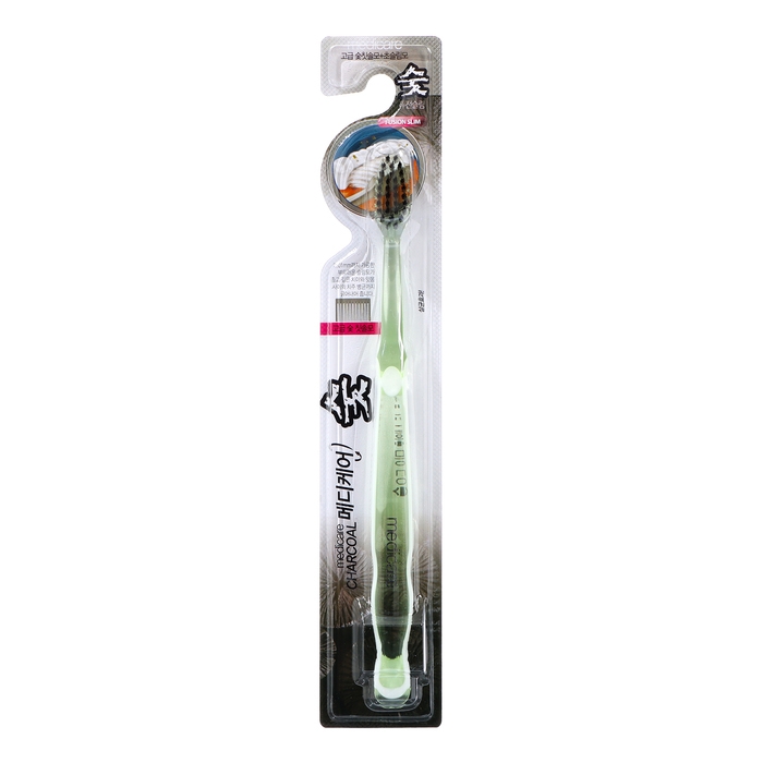 Зубная щетка с частицами угля и технологией двойных щетинок. Входящий в состав уголь обладает антибактериальными свойствами, предотвращает появление неприятного запаха, улучшает кровообращение десен, а тончайшие щетинки толщиной до 0.1 мм мягко удаляют налёт и болезнетворные микробы с поверхности зубов, десен и в пространстве между ними. Эргономичная ручка обеспечивает комфорт при чистке зубов.