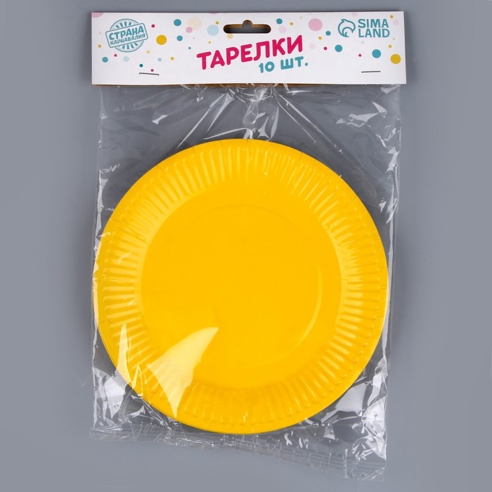 Тарелка одноразовая бумажная однотонная, желтый цвет 18 см, набор 10 штук