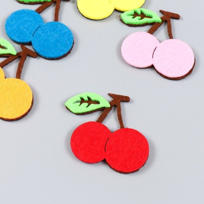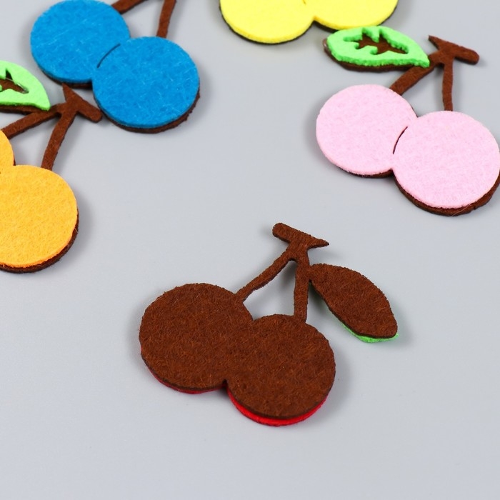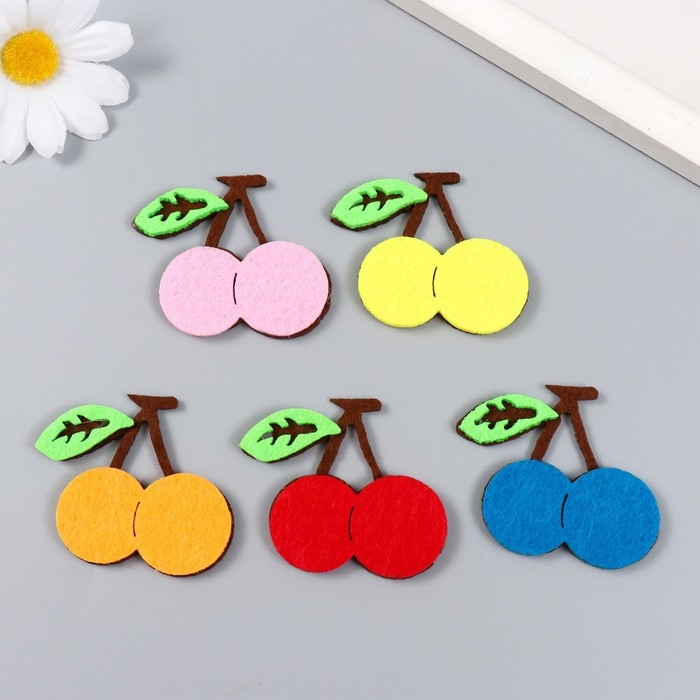 Декор для творчества войлок "Двойные вишенки" набор 5 шт 5х4,7 см