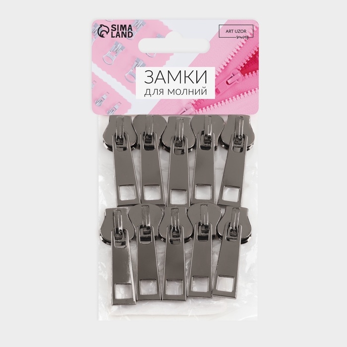 Бегунок автоматический для молнии «Трактор», №5, 10 шт, цвет чёрный никель