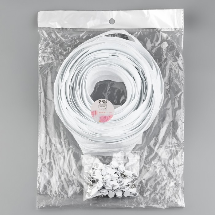 Набор: рулонная молния «Спираль» №3, 10 м, 20 бегунков, 40 верхних ограничителей, 20 нижних ограничителей, цвет белый