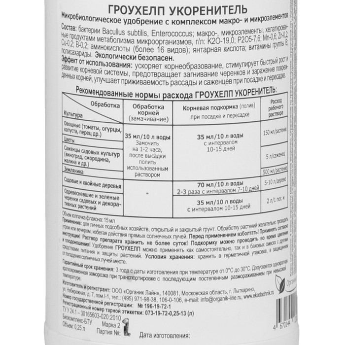 Удобрение жидкое ГРОУХЕЛП для овощей, 250 мл