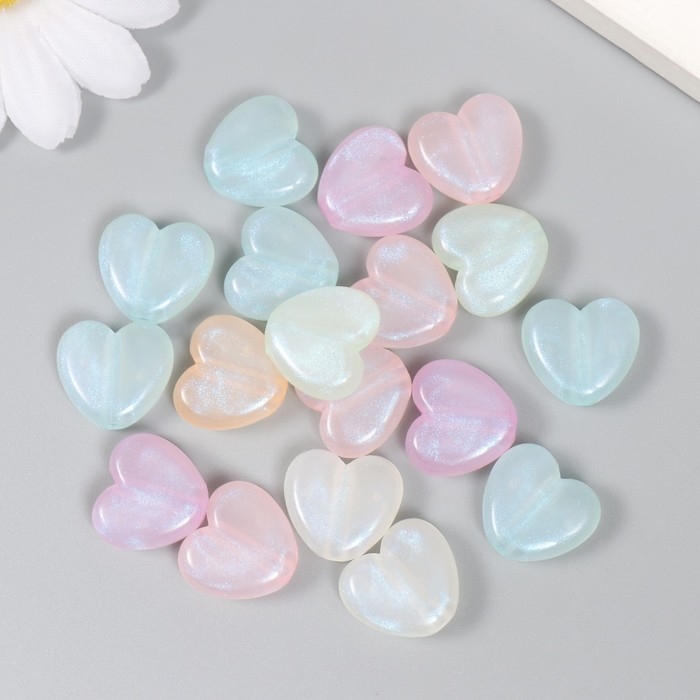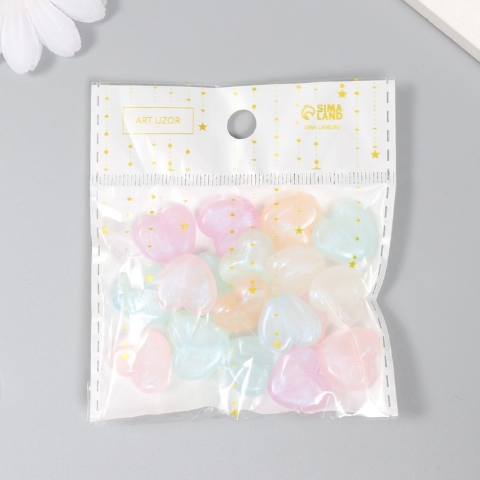 Бусины для творчества пластик "Сердечки. Блеск" набор 20 гр 1,9х2х0,9 см
