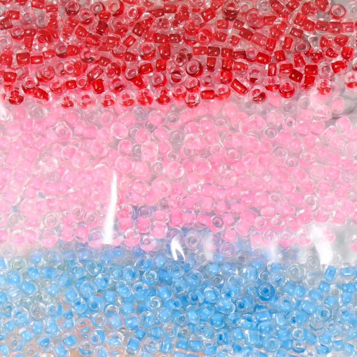 Бисер круглый размер 12/0 "Прозрачный, внутри цвет. Ассорти" 7 цветов х 5 грамм