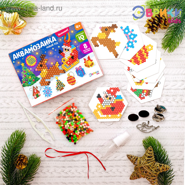 Аквамозаика от торговой марки скрасит дни в ожидании Нового года и поможет весело и с пользой провести время. Ребёнок соберёт объёмные фигурки из шариков-пикселей, потренирует мелкую моторику и внимание.
