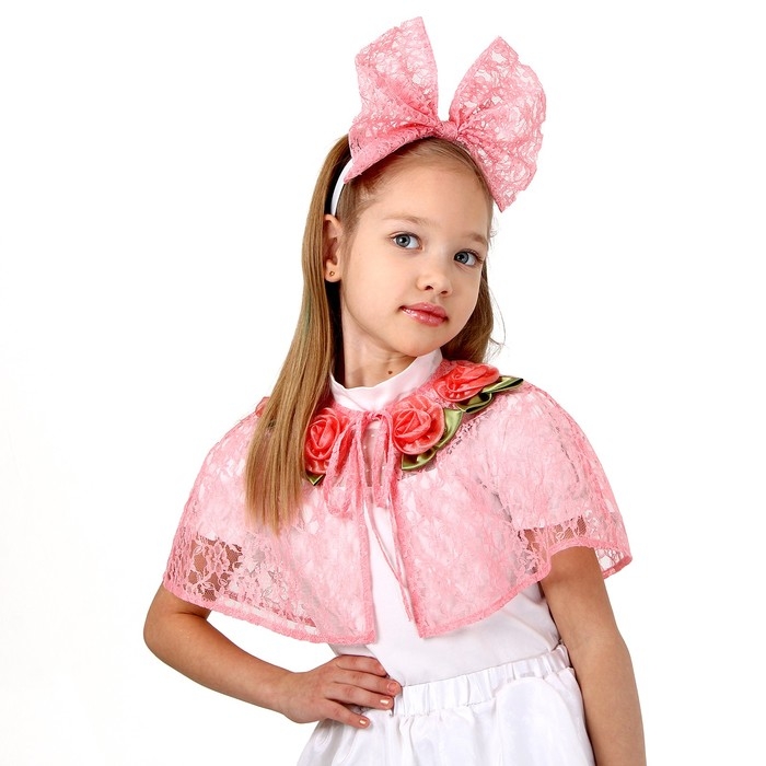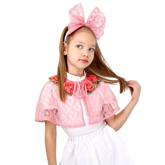 Карнавальный набор принцессы пелерина гипюр коралловый,гол.убор 98-128