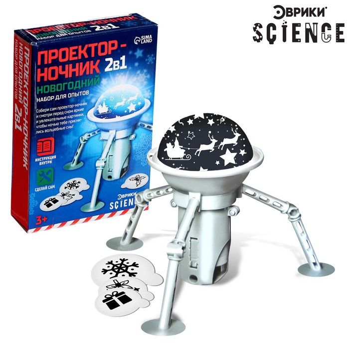 С научным опытом ТМ «Эврики» маленький гений превратит свою комнату в настоящий планетарий. При сборке ночника, который выглядит как космический аппарат, ребёнок поймёт принцип работы светильника. Ночник превращается в проектор, так что малыш сможет погрузиться в мир звёзд.