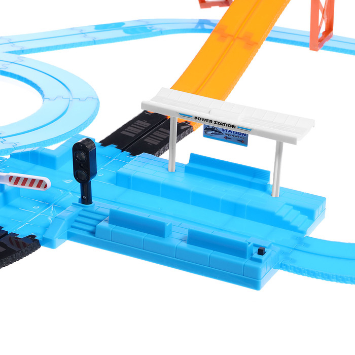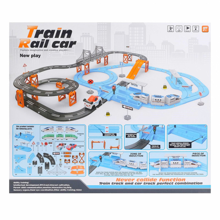 Автотрек железная дорога «Большое путешествие», с машинкой и поездом, перекресток, светофор