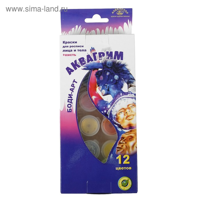 Краска для лица и тела «Аквагрим», боди-арт, 12 цветов, 12 шт., 3 мл, кисть