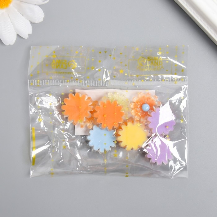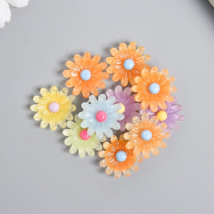 Декор для творчества пластик "Ромашка с цветной сердцевиной" набор 10 шт