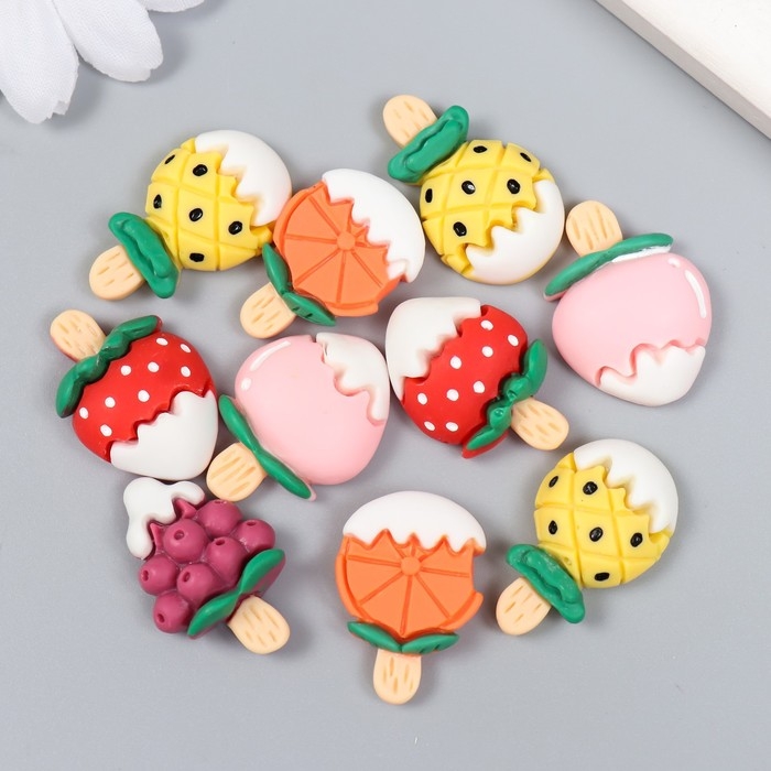 Декор для творчества пластик "Фруктики на палочке" набор 10 шт 2,1х1,4 см