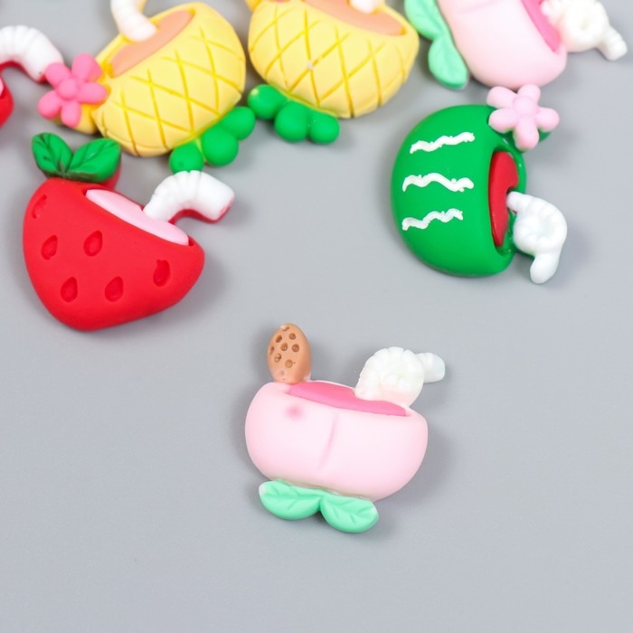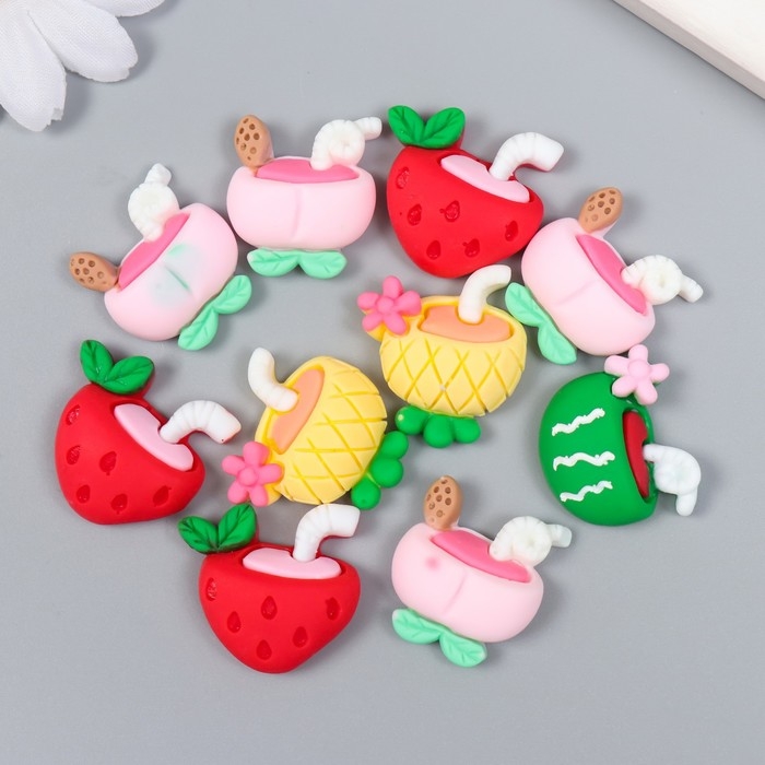 Декор для творчества пластик "Коктейль из фруктов" набор 10 шт 2,1х1,9 см