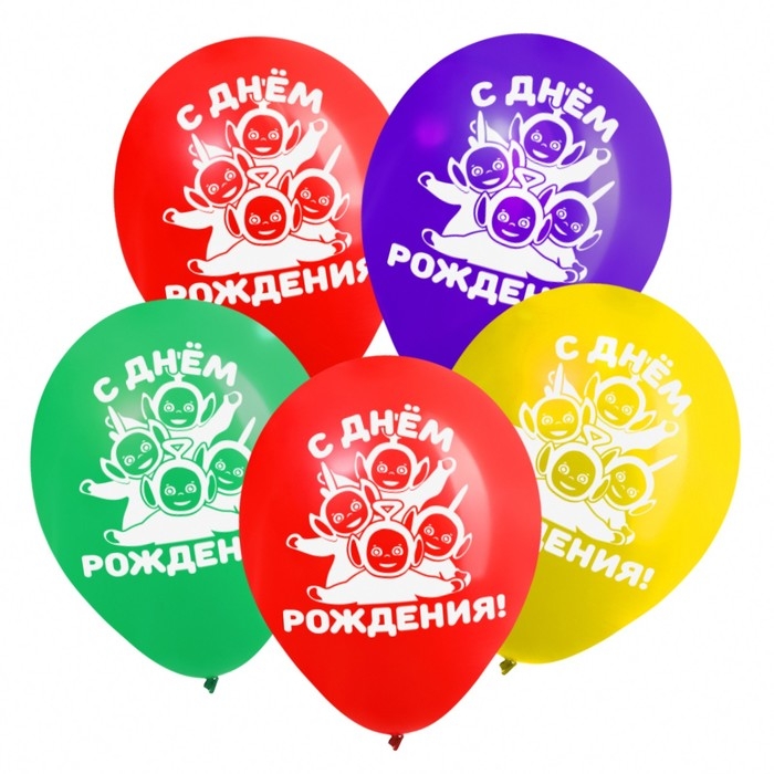 Шар воздушный "С Днём рождения!", 12 дюйм, латексный, 5 штук, Телепузики