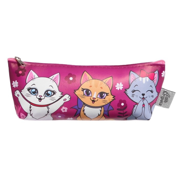 Пенал мягкий 1 отделение, 80 х 190 х 40 мм, объёмный, искусственная кожа, "Миленькие котята"