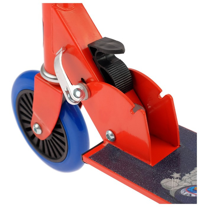 Рама складывается: рулевая стойка опускается к деке. В таком состоянии самокат занимает мало места. Платформа с шероховатым покрытием предотвращает скольжение ног. Высота руля регулируется и фиксируется в трёх положениях.