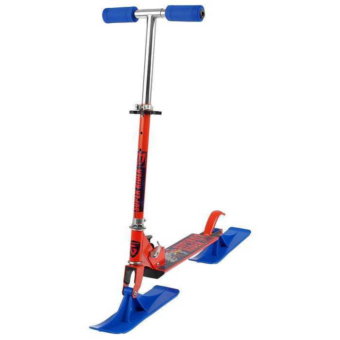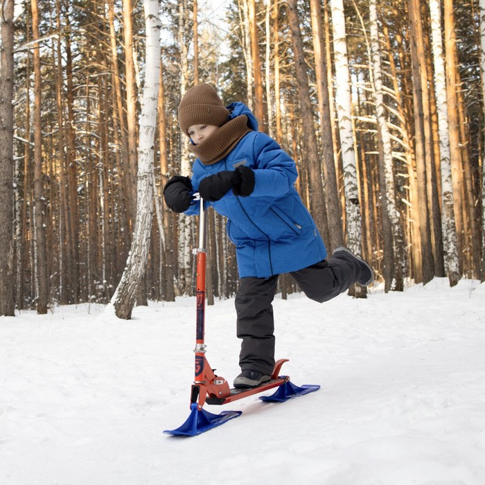 Самокат-снегокат актуален зимой и летом. На колёсах можно кататься по любым ровным поверхностям в сухое время года, зимой — на лыжах по снегу.