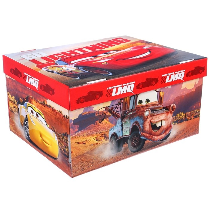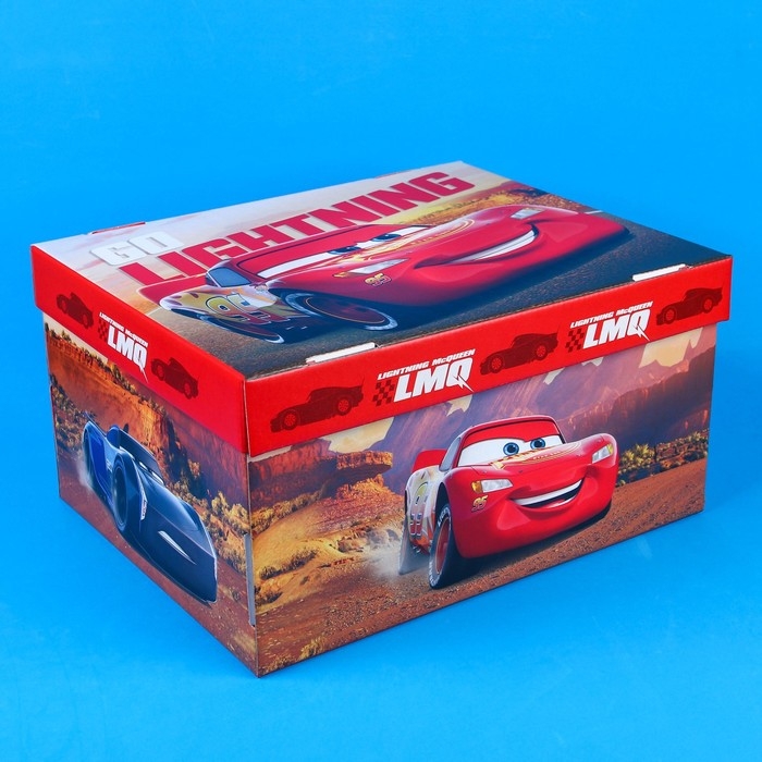 Подарочная коробка с крышкой, складная, 31х25.5х16 см, Тачки