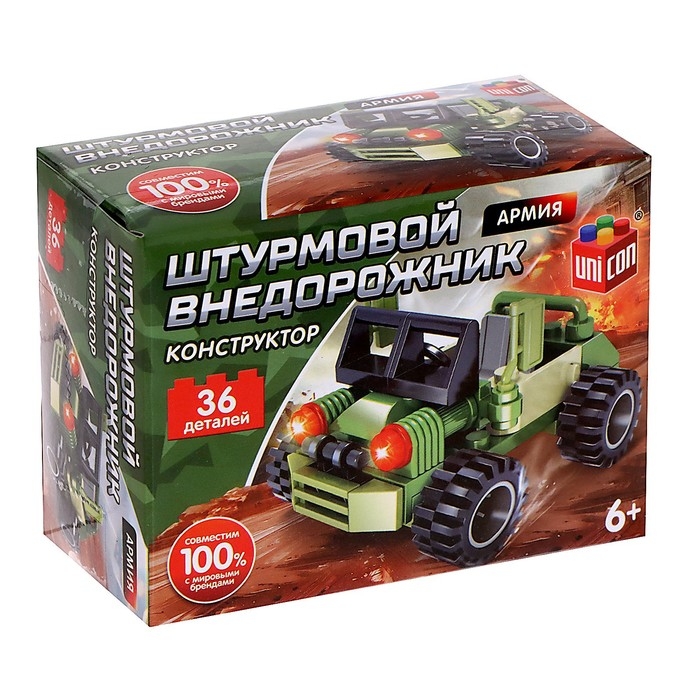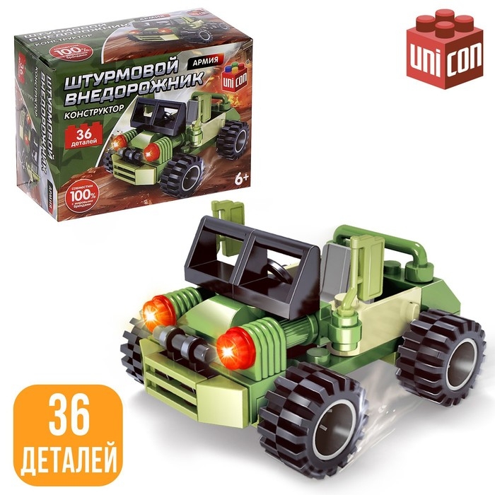 Соберите штурмовой внедорожник торговой марки UNICON и пополните автопарк военного транспорта. С таким конструктором удобно расширять кругозор ребёнка и развивать другие полезные навыки.